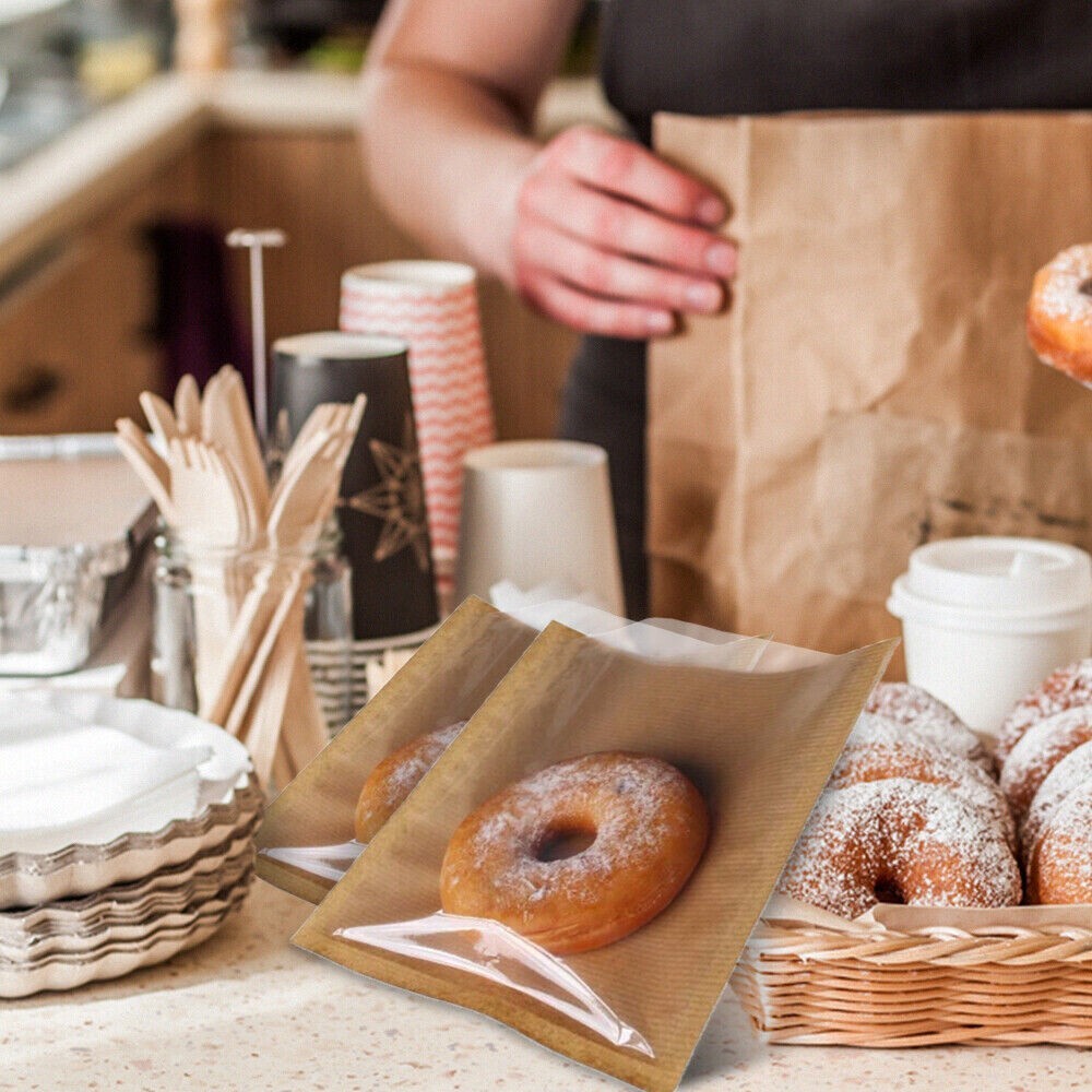 Film Fronted Clear Window Paper Bags Brown Food Display Bags