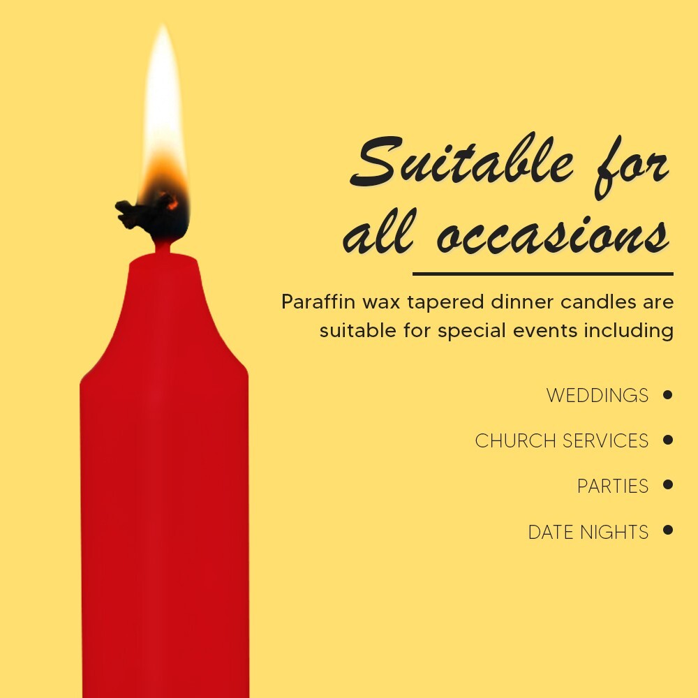 Tapered Dinner Candles 190mm Unscented Paraffin Wax