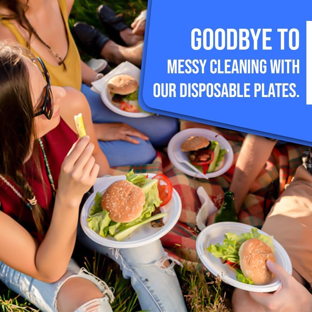 Bagasse Paper Plates 7 / 9 / 10 Inch White Biodegradable Sugarcane Fiber Dishes