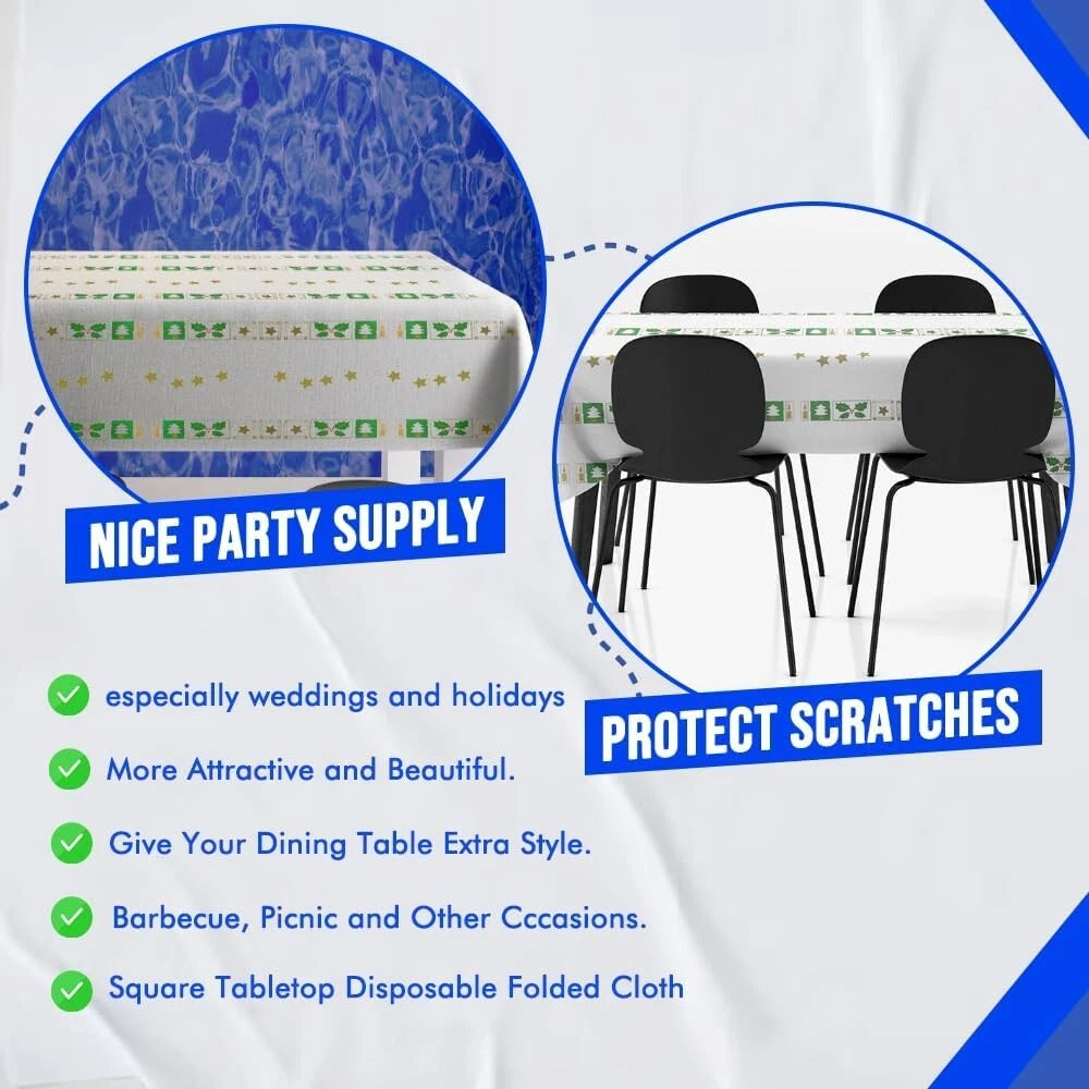High-Quality Material :- This christmas able cloth is crafted from durable paper, these tablecloths are designed to withstand the demands of dining while maintaining their festive appearance. They are sturdy enough to hold up throughout your meal and festive activities.