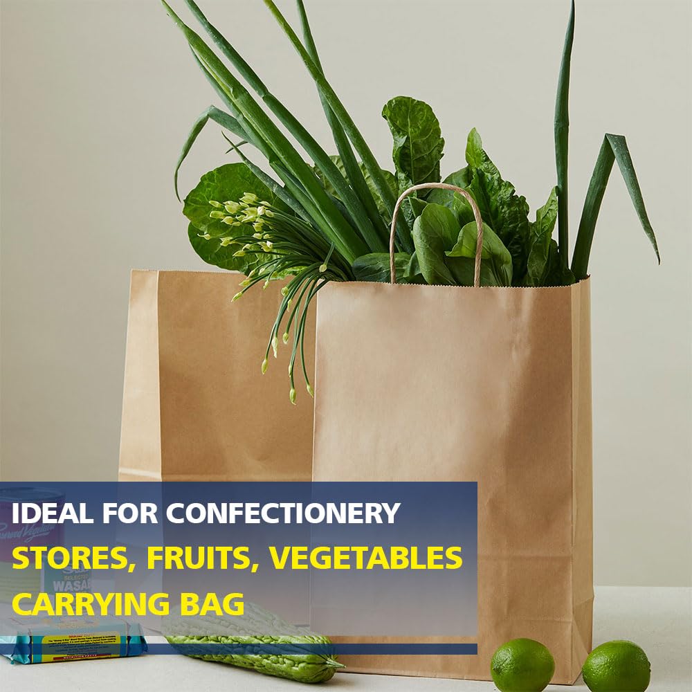 Venuscello® 250 x Twsited Handle Paper Bags 25.4cm x 31.49cm x 12.19cm Brown Kraft Carrier Party Bag for Shopping Cloths & Jewellery - 10 x 12.4 + 4.8 in