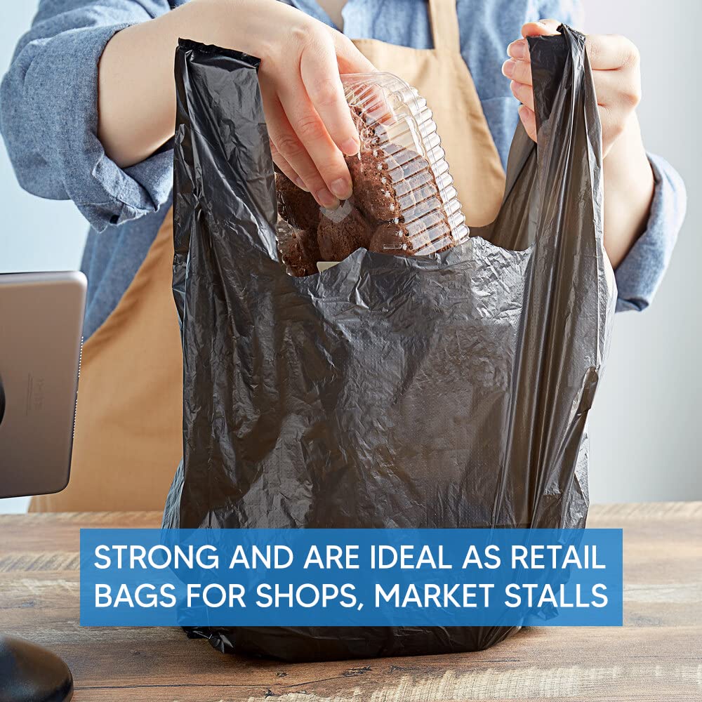 Venuscello® 4000 x Vest Style Carrier Bags Black Plastic 11" x 17" x 21" Heavy Duty Carry Bags for Vegetables Fruits Groceries Shopping