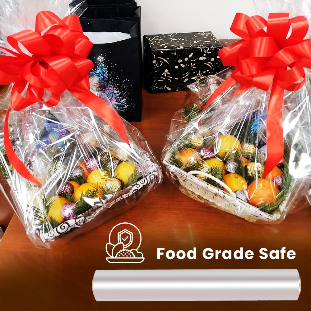 Venuscello® Cellophane Clear Wrap Roll 100m x 80cm Hamper Gift Wrapping Florist Paper for Wrapping Gift Hamper, Flower Craft Basket