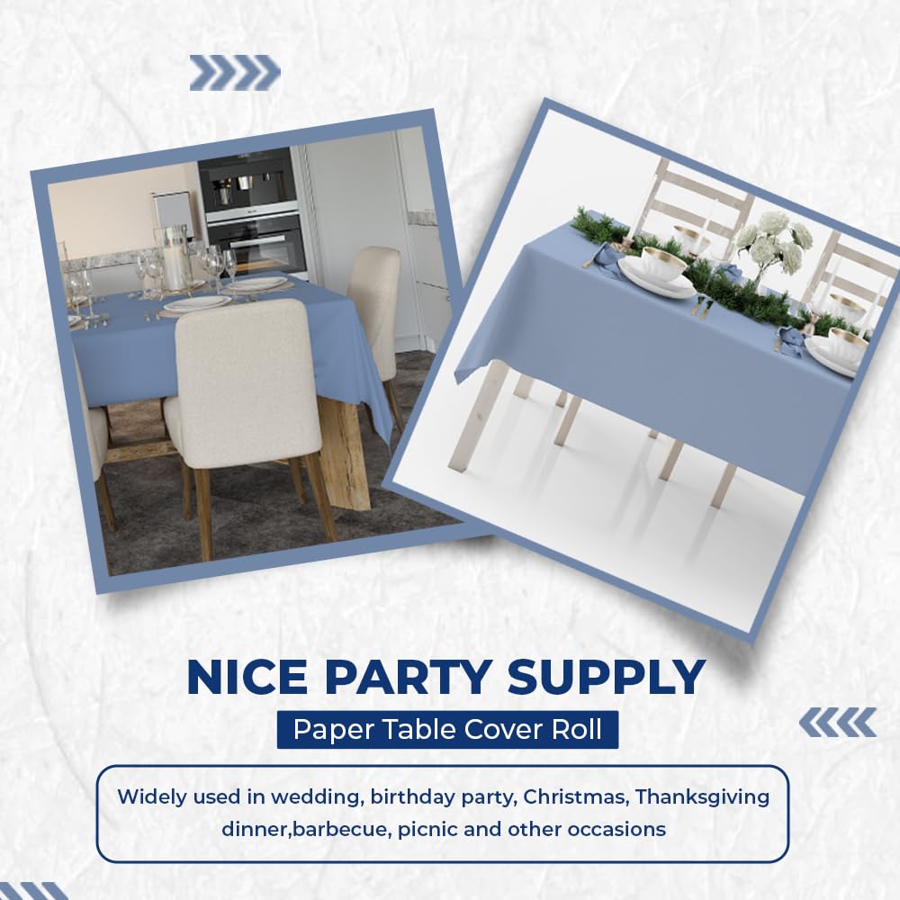 Venuscello Blue Banquet Roll 8m x 120cm Paper Banqueting Table Cover for Wedding Buffet Dinner Home Large Disposable Table Paper Cloth